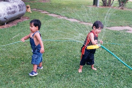 MORE SUMMER FUN!! When we first got home, Eli and Maria were terrified of the water. This did not make for happy bath times. Now, however, even a small mudd puddle is cause for celebration!
